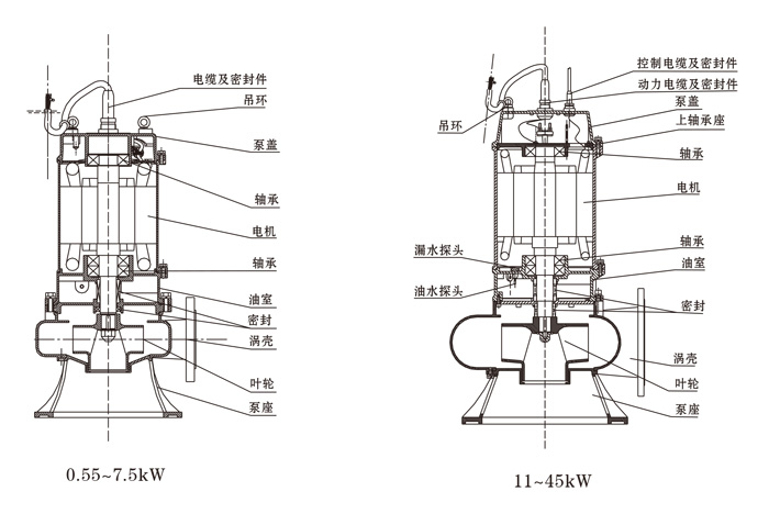 2、無(wú)內(nèi)自流循環(huán)冷卻系統(tǒng)的泵,電機(jī)部分露出液面不得超過(guò)電機(jī)的1/2.